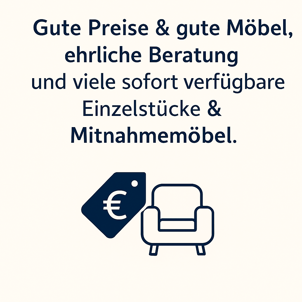 Unsere 2.-Wahl-Möbel werden in unserer Werkstatt sorgfältig geprüft und aufbereitet, sodass daraus vollwertige, hochwertige Stücke entstehen — oft deutlich günstiger als Neuware.